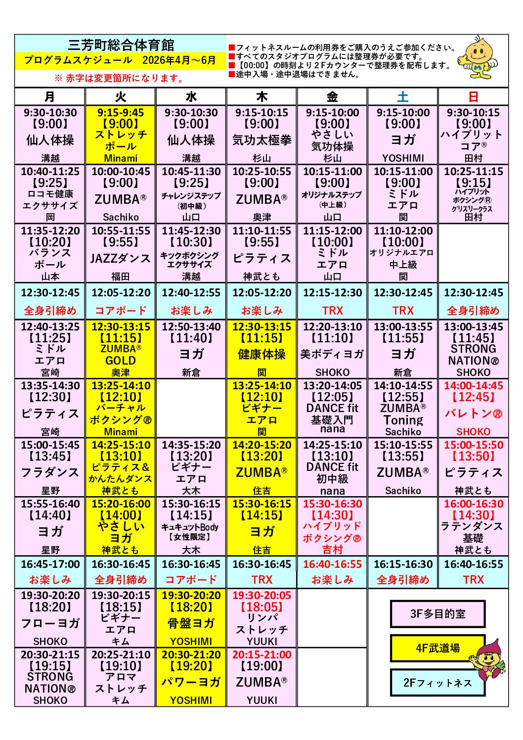 定員到達の際はご了承下さい。(レッスンで使用する道具によって制限があります) - ②入場する際、担当インストラクター又はスタッフに整理券を渡して下さい。